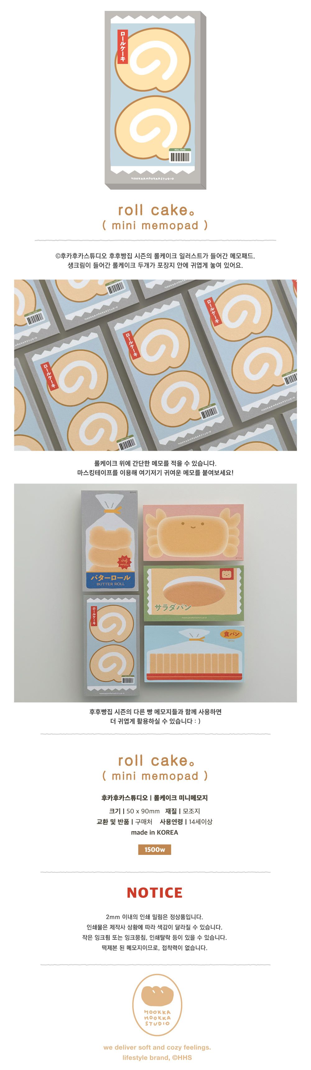 [후카후카스튜디오] 롤케이크 미니메모지