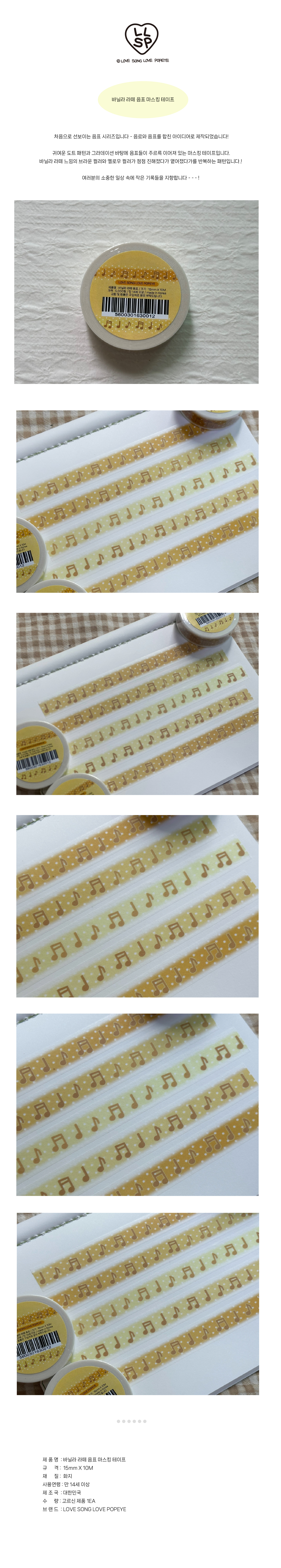 [러브송러브뽀빠이] 바닐라 라떼 음표 마스킹테이프